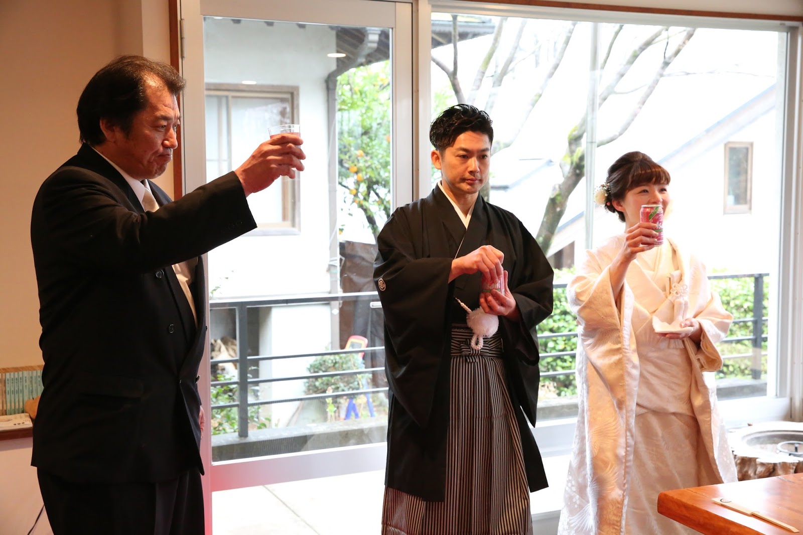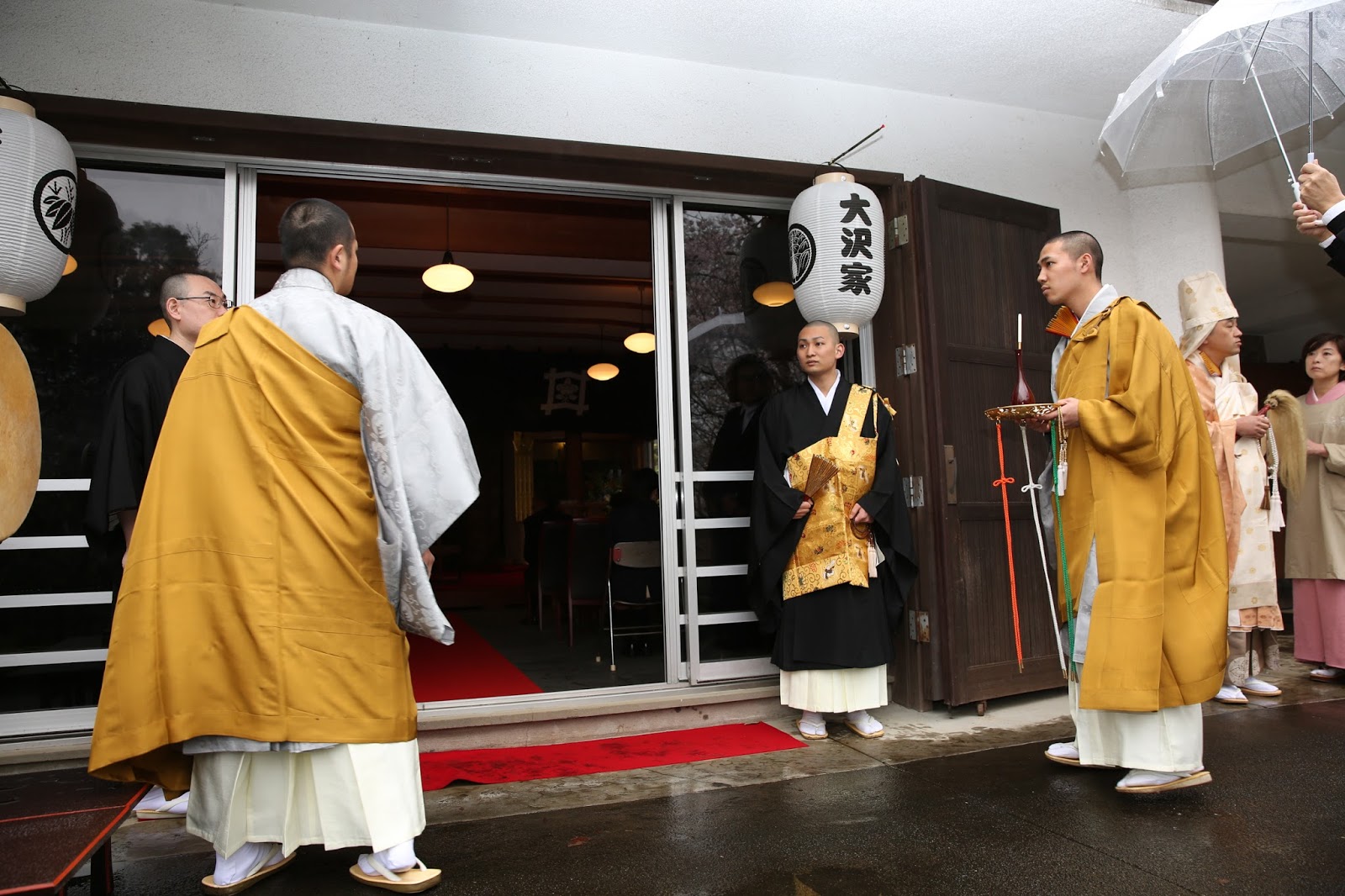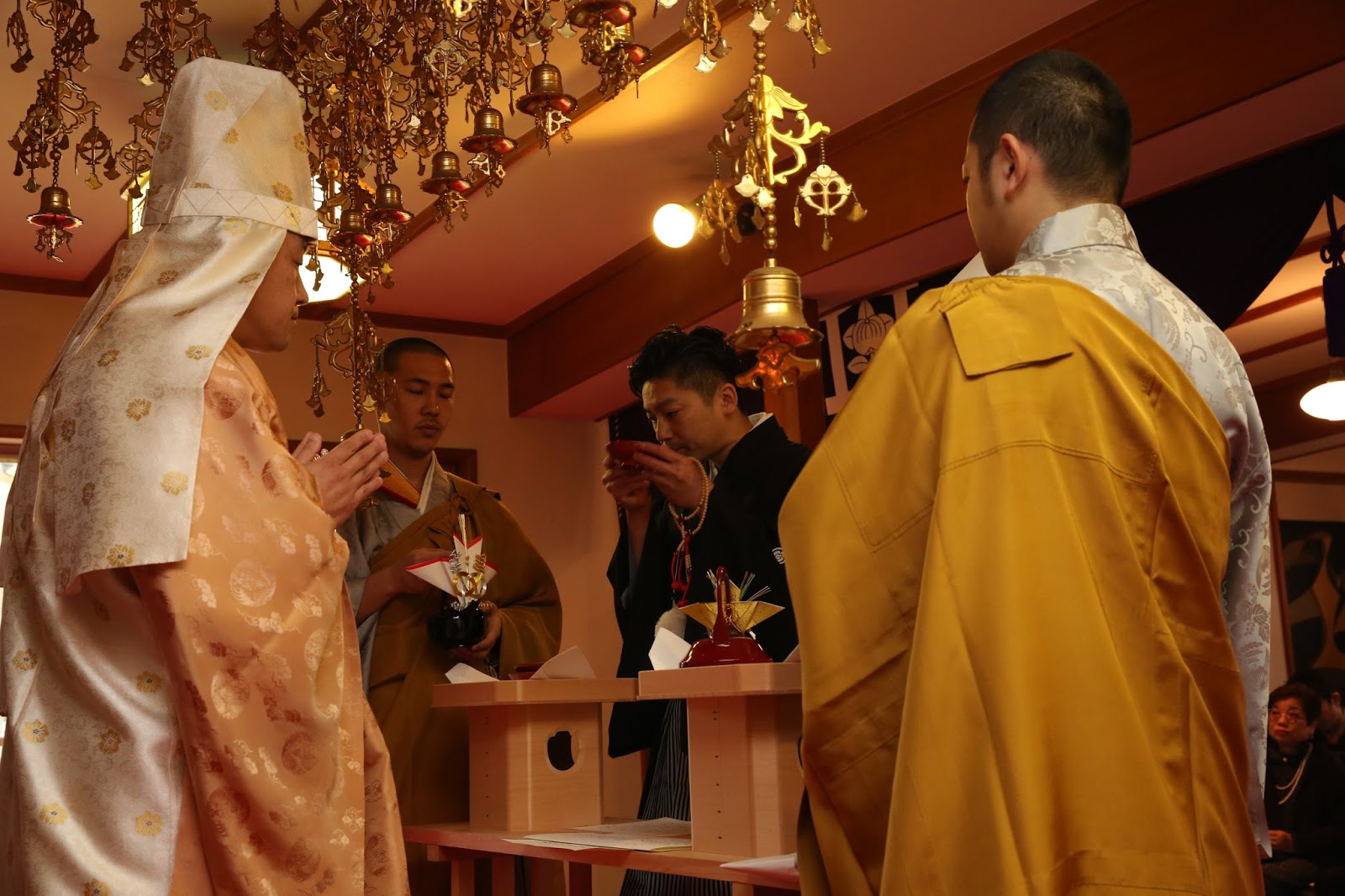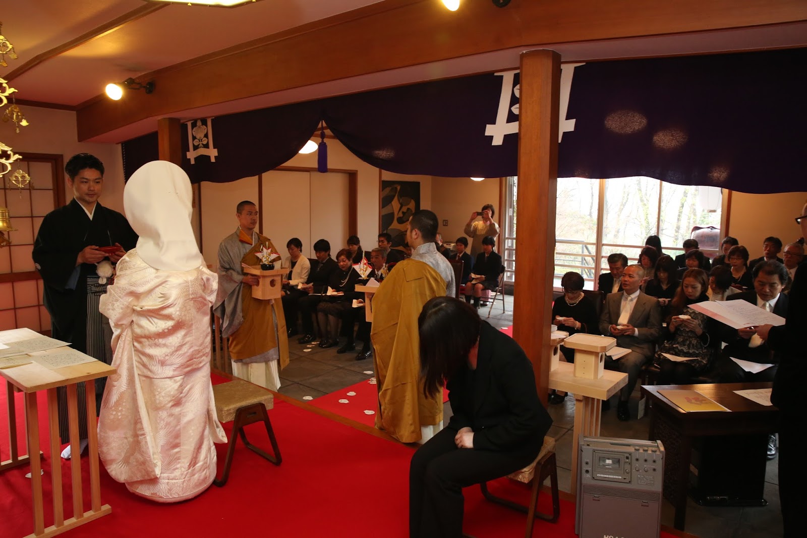 桜満開の季節に、大沢・谷本家結婚式が執り行われました。式長は、日蓮宗延寿院第31世住職及川一晋上人が務めさせて頂きました。午前中はあいにくの空模様でしたが、優しい雨がお二人を祝福しているかのような素敵な一日でした。