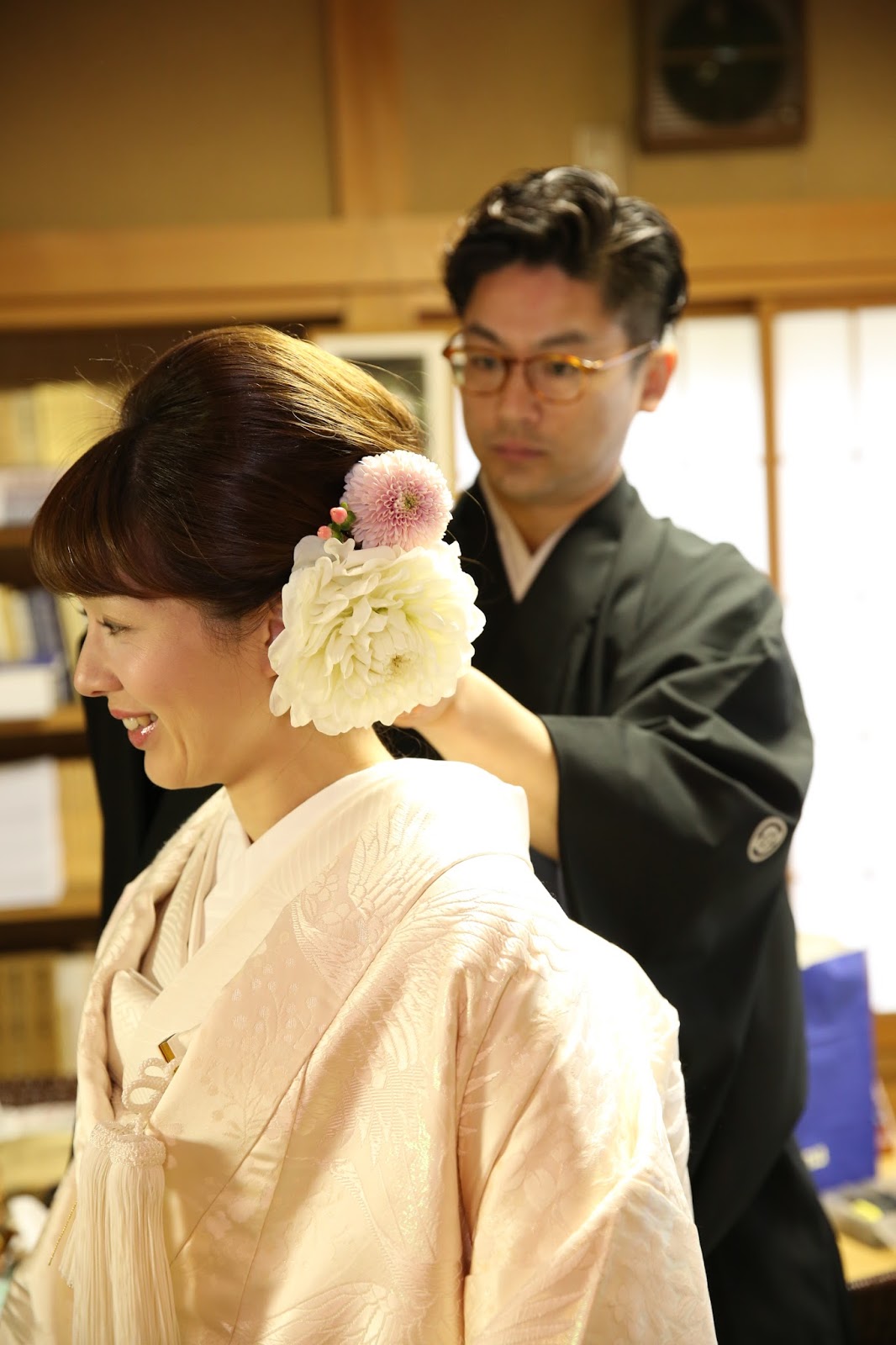 美容師でもある新郎さまが髪結い