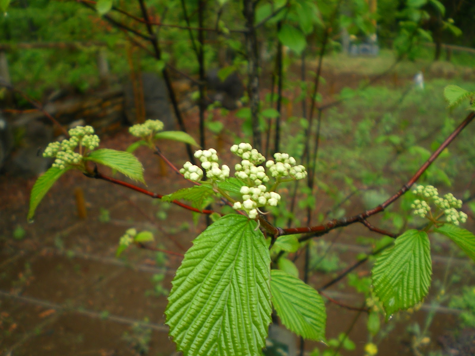 東京里山墓苑では、可憐な白い花びらで恵みの雨をこぼさないようにガマズミが咲いています。秋には赤い色の実をつけて里山をにぎやかにする風情もいいものですが、この時期の甘い薫りと器のような白い花も樹木葬墓苑に安らぎを与えてくれているようで春の心地の良さを運んで来てくれるような存在です。