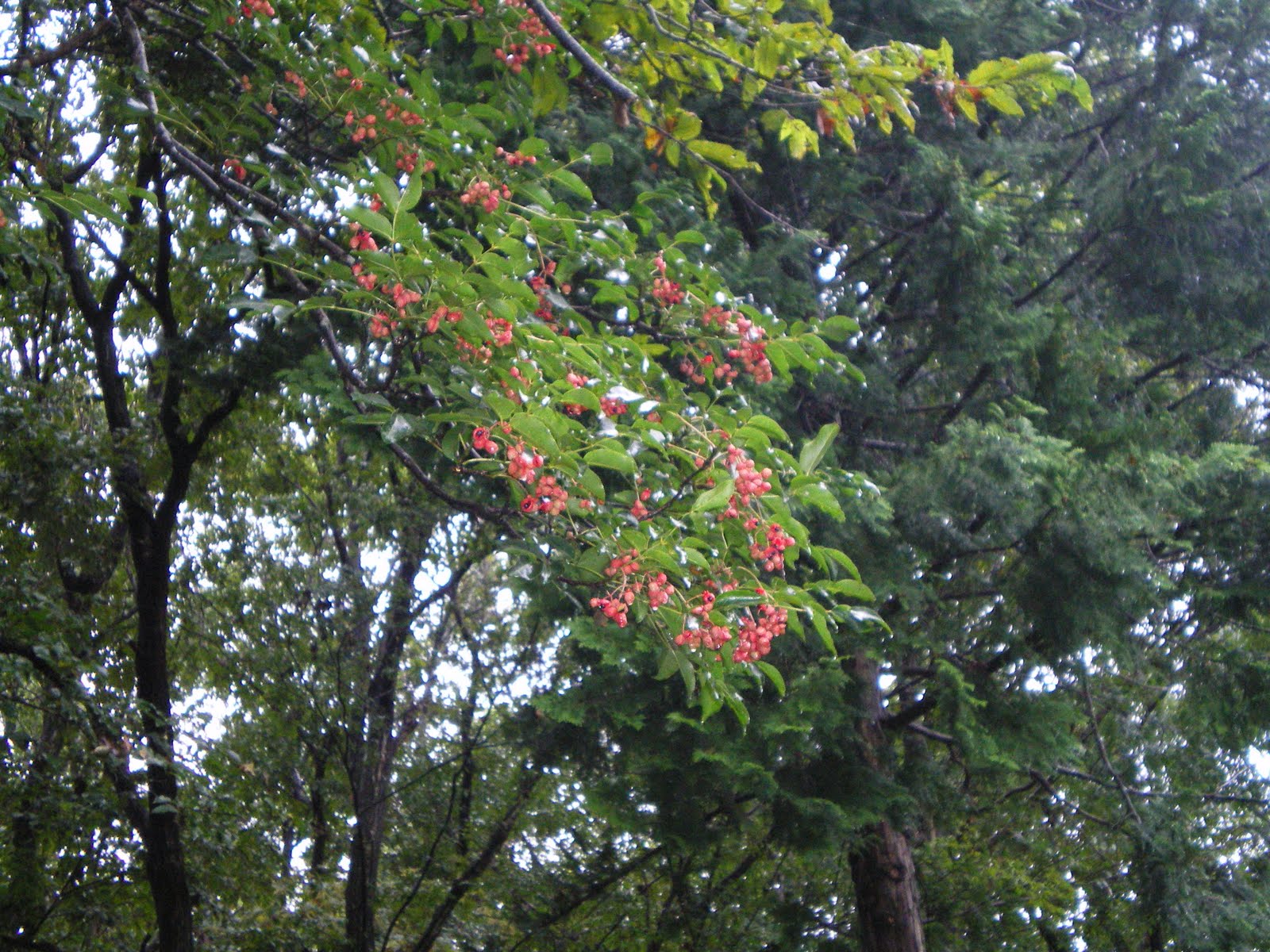 赤い実をつける里山の木々、ひっそり咲く朝顔、黄色の実に変わりゆく山椒。