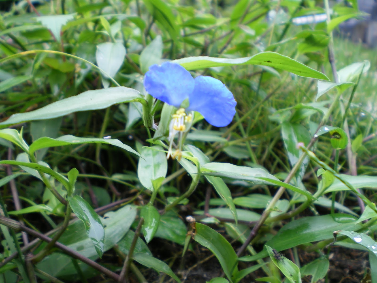東京里山墓苑樹木葬エリア、ミッキーマウスに似た名前の美しい!蛍草(露草、月草)が雨上がりにひっそり咲いています。